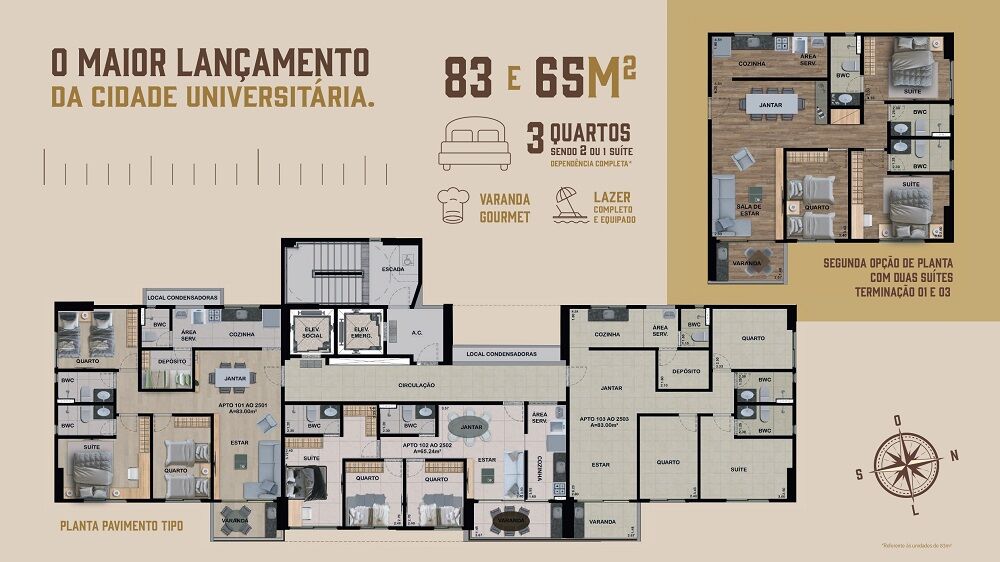 Opção de planta com duas suítes*